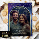 Announce your wedding in style with the Celine Save the Date, featuring luxurious real gold foil text and star details on the front. This celestial-themed card includes a custom couple's photo framed by a rich night sky arched design in deep blues and purples, accented by shimmering gold foil stars. On the back, a personalized monogram adds a timeless touch, tying the whole design together. Perfect for cosmic or evening weddings, this Celine Save the Date card is a beautiful way to set the tone for your special day. Part of the Celine Wedding Suite, this card ensures a cohesive, elegant look across all your wedding stationery.