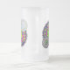 Colorful Medallions adorn this frosted mug. Dishwasher safe durable frosted glass. Place in the freezer to serve cold brews or gatorade
