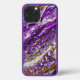 A colorful abstract design in shades of purple, white, and gold covers this cell phone case.