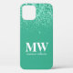 Modern Cell phone Case in teal and teal glitter, elegantly adorned with your script monogram, first name and initial.