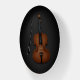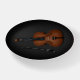 This is a charming illustration of a cello and bow lying side by side drawn with trompe l'oeil effect to resemble miniature 3-d objects.
