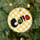 Lightweight, smooth, pure white ornament with nice sheen. Perfect size to be seen from across the room ... and to attract closer inspection! Price was great for ordering enough for the whole family! Clear, bold black design just as requested. Matches the order exactly. Just so nice!