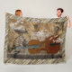 A beautiful old cello is the focal point in the surreal scenario on this cozy fleece blanket, which depicts a gravity-defying antique pocket watch, Bach music manuscript, and improbable flying machines gliding through the clouds, among other unexpected elements. Surrounding the main image is a frame of weathered, grayish, wooden planks.