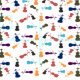 Multicolored musical cello, violoncello, instrument and bow pattern design in blue, aqua, red, orange, brown, charcoal and purple.