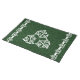 White artwork over a green granite background. A standard 4-point Celtic square knot stretched around a circle in a 3 group pattern. Very geometric. Customizable.