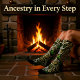 Deep forest greens and warm golden tones create a rich harmony against the dark heel and toe accents. The circular emblems echo spinning vinyl records and drum heads, while the flowing lines move like a fiddle tune carried through a lively session. Every detail feels intentional, layered, and full of cultural rhythm.