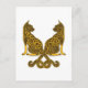 Two seated cats with their tails entwined, rendered in celtic knotwork in gold and bronze