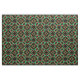 A pattern of interlocking ribbon like shapes inspired by Celtic knot artwork along with wreaths of holly leaves and berries all in a traditional holiday color combination of red and green with golden yellow accents is featured on this Christmas fabric.