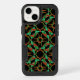 This Otterbox case is decorated with a holiday pattern of interlocking ribbon like shapes inspired by Celtic knot artwork along with wreaths of holly leaves and berries all in a traditional Christmas color scheme of red and green with golden yellow accents.