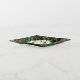 This pretty trinket tray is decorated with a pattern of interlocking ribbon like shapes inspired by Celtic knot artwork along with wreaths of holly leaves and berries all in traditional holiday colors of red and green with golden yellow accents.