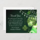 This enchanting wedding thank you postcard features a beautiful Celtic design with a charming clover and string lights on a green background. - Thank you text - "Thank You for celebrating our special day with us! We are so grateful for your generous gift and well wishes. We hope you enjoyed the day as much as we did. love and thanks, <Names>" - The thank you text can be personalized to read as you wish.