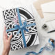This design features a Celtic cross, which is a form of Christian cross featuring a ring (or nimbus) that emerged in Ireland, France and Great Britain in the Early Middle Ages. it became widespread through its use in stone high crosses, especially in regions evangelized by Irish missionaries, from the 9th through the 12th centuries. The form gained new popularity during the Celtic Revival of the 19th century. The Celtic cross is now appreciated around the world.
