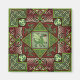 A stylized dragon sits at the center of a labyrinth of deep red and olive green Celtic knotwork. Is the dragon trapped in the center or is he master of the labyrinth?