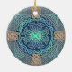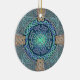 Celtic knotwork art in planetary/earthy tones of blue, green, and tan, with an 'eye' in the middle