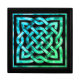 A large gift box featuring blue-green Celtic knot tile design against a black background.