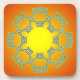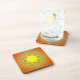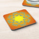 A green-blue Celtic knot set against a sunburst background cork coaster.