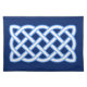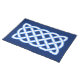 Placemat in a Celtic, rectangular, continuous knot pattern, symbolizing sacred geometry and the interconnectedness of all life in the universe - white pattern outlined in turquoise on a dark cobalt blue background