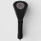 A golf head cover with a Celtic knot design with a red square cross in the center.