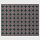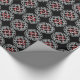 A wrapper with a pattern of a Celtic knot design with a red square cross in the center.