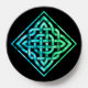 A phone grip with a blue-green Celtic knot diamond design against a black background.