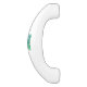 A ceramic cabinet pull with a blue-green Celtic knot squarish design.