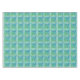 A tablecloth with a blue-green Celtic knot design against a white background.