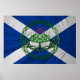 The symbol of Scotland, the Guardian Thistle, in a Celtic Knot design overlaying the Flag of Scotland.