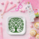 Paper plates in a stylized, Celtic knot, tree of life design in dark emerald Green on a white background