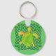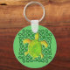 Sea turtle with a Celtic knotwork pattern shell and a celtic knot background. Embossed style, green and yellow colors.