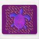 Sea turtle with a Celtic knotwork pattern shell and a celtic knot background. Embossed style, purple and maroon colors.