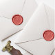 Before the wax hardens, gently and evenly press the wax seal stamp into the melted wax, ensuring it's centered.