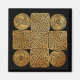 An intricate Celtic knotwork cross with eternal spirals and trinity knots adorns an ancient parchment