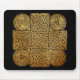 An intricate Celtic knotwork cross with eternal spirals and trinity knots adorns an ancient parchment