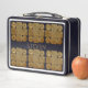 This is a standard metal lunchbox that appears to work just fine. We designed this box ourselves with an uploaded photo and custom text on the front and back. It looks absolutely beautiful except the front of the lunchbox is not centered like it shows in the photo. The print borders don't align with the inset flat part of the box where the preview photo online showed it perfectly centered in there. The back looks nice and centered though.