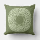 Circular medallion nautical design of entwined Celtic knotwork swimming fish in shades of green.