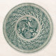 Celtic Knotwork Irish Medallion Pattern in Green Round Paper Coaster