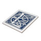 A beautiful, decorative embossed celtic letter illuminated with gray dragon heads on a velvety dark blue background.