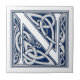 A beautiful, decorative embossed celtic letter illuminated with gray dragon heads on a velvety dark blue background.