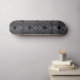 Black skateboard with silver Celtic pattern.
