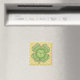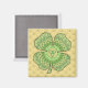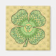 This classic four leaf clover overlays a concentric circle design featuring layers of Celtic weaves in multiple shades of green with a bit of orange for accent.