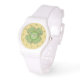 This classic four leaf clover overlays a concentric circle design featuring layers of Celtic weaves in multiple shades of green with a bit of orange for accent. This watch is available in a variety of colors, styles, and sizes, including sizes for both kids and adults.