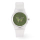 This design features a swallowtail butterfly with pink and green markings and a Celtic weave on the wings and body. One wing shows the weave on the black and the other on the pink and green markings. This watch is available in a variety of colors, sizes, and styles, including sizes for both kids and adults.