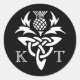 Celtic Thistle Initials - Black & White Classic Round Sticker
