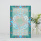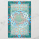 A Celtic knotwork sea turtle swims against a circular blue knotwork sea. With a geometric knotwork pattern as a background. Lined stationery.
