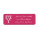 A bright raspberry pink return address label is decorated with a white Celtic weave heart on the left and sample text on the right for customizing to make it your own.