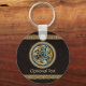 Richly intertwined Celtic knots creating the shape of a wolf and surrounded by a wreath of knots, in turn framed in more intricate patterns. A great piece of culture, history and heritage, all over a background of dark brown (chocolate) simulated old leather.