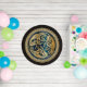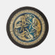 Richly intertwined Celtic knots creating the shape of a wolf and surrounded by a wreath of knots, in turn framed in more intricate patterns. A great piece of culture, history and heritage, all over a background of dark brown (chocolate) simulated old leather.