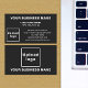 Center aligned style black business card for your customers or clients to easily find your business address and contact information. Customize it by uploading your business logo, typing your business name, your name, your title, address, phone number, e-mail and website or social media page. Please check the appearance of the front and back sides after uploading logo and typing texts. If the appearance is pleasing to you, you can place your order now. If you need to resize or reposition the logo and texts, please adjust in the design tool. You can also change the background color, font color and font style in the design tool.