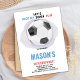 Plain white envelopes are included with paper invitations and will come to fit the invitation size you select. If you don’t need the envelopes, you may choose to not receive them by selecting the dropdown below "Envelopes" and choosing "None." If you’d like to have a design on your envelopes, you can browse all of these available envelopes to find the design that complements your Center Ball Soccer Birthday Invitations.