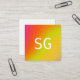 A square business card template with a simple clean design. A solid color on the front with initials aligned to the left around 1/3 from the top. With name, profession/job title along with telephone, email and website address on the reverse side. This template is also a good starting point for further customization.